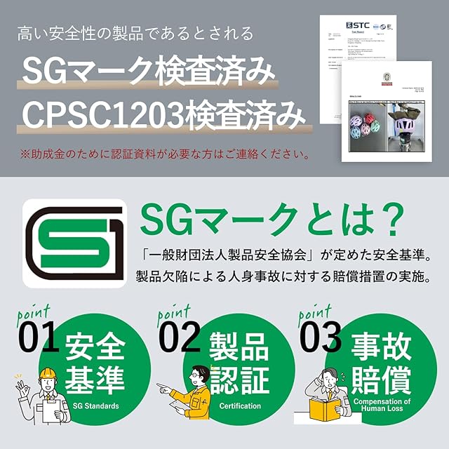 【日本向け子供用ヘルメット】当社のヘルメット は、日本国内の子供に特化した製品で日本人の子供の頭部形状に合わせて設計。 CPSC1203マーク・CEマークEN1078・SGマーク認証を取得。