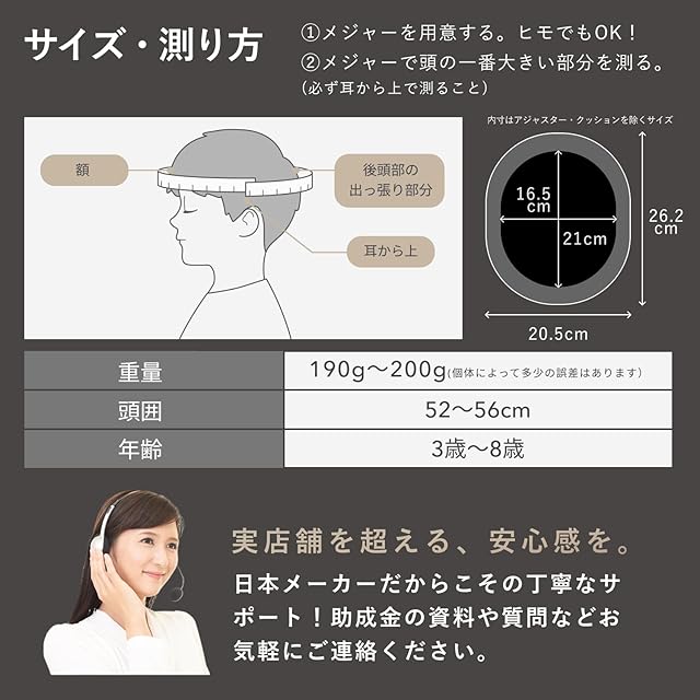 【 対象年齢】3~8歳【 サイズ】52-56cm お子様の頭を耳から上の頭の一番大きい部分をメジャーで測ってください。