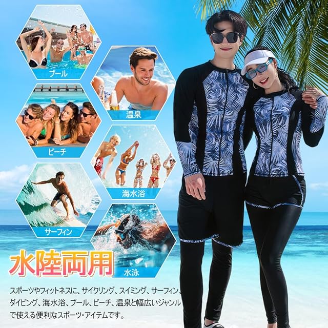 [Candy Kiosk] ラッシュガード メンズ レディース 水着 上下セット 長袖 前開き フィットネス ビーチ 水泳 温泉 UVカット 吸汗速乾 通気性 水陸両用 男女兼用