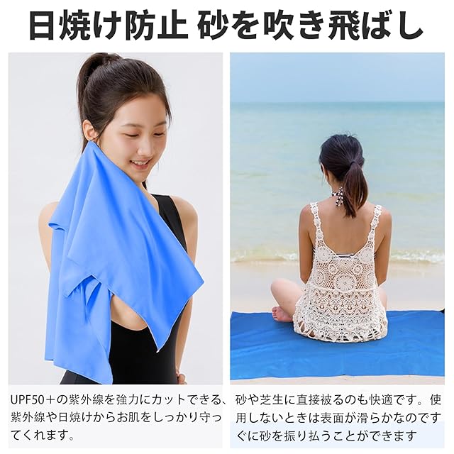 【多くの用途】上記の利点に加えて、日焼け対策や防砂特性も備えた、多機能なタオルです。バス、旅行、スイム、ビーチ、ジム、登山、出張、ジョギング、サウナ、温泉、銭湯、キャンプ、ヨガ、ピクニック、アウトドアなど活動に最適です。