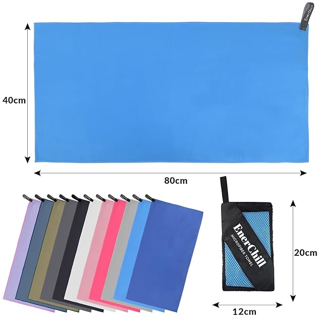 EnerChill 速乾タオル ビーチ スポーツタオル マイクロファイバー スイミング プールタオル コンパクト 軽量 汗拭き アウトドア ジム 登山 旅行 運動 髪 バスタオル (スカイブルー, Sサイズ(40×80cm))