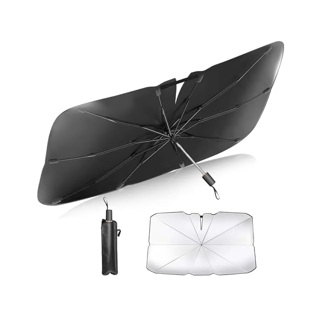 Kemiuu サンシェード 車 フロント 【2025新設計 曲がる中棒 繊維骨格】 傘型 折り畳み式 遮熱 遮光 UVカット 紫外線遮蔽 車中泊 仮眠 車用パラソル 取付簡単 収納ポーチ付き ほぼ全車種に適用 暑さ対策(135*75 CM) (M)