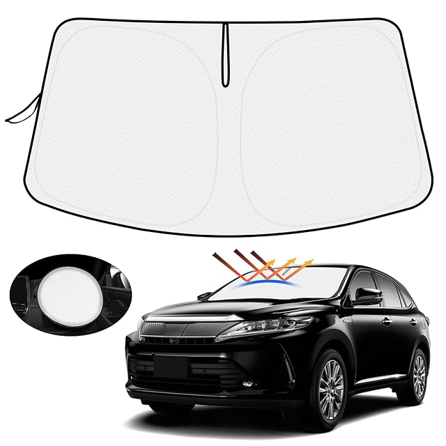 【ハンドル日よけカバー付き】Mozan トヨタ ハリアー 60系 サンシェード フロントガラス用 HARRIER 60系 H25.12-H29.5 車用サンシェード UVカット 日よけ 日差しカット 遮光 断熱 折り畳み式 ハンドルサンシェード 収納袋付き ハニカム設計 インテリア 取付簡単 暑さ対策 内装パーツ メーカー直営