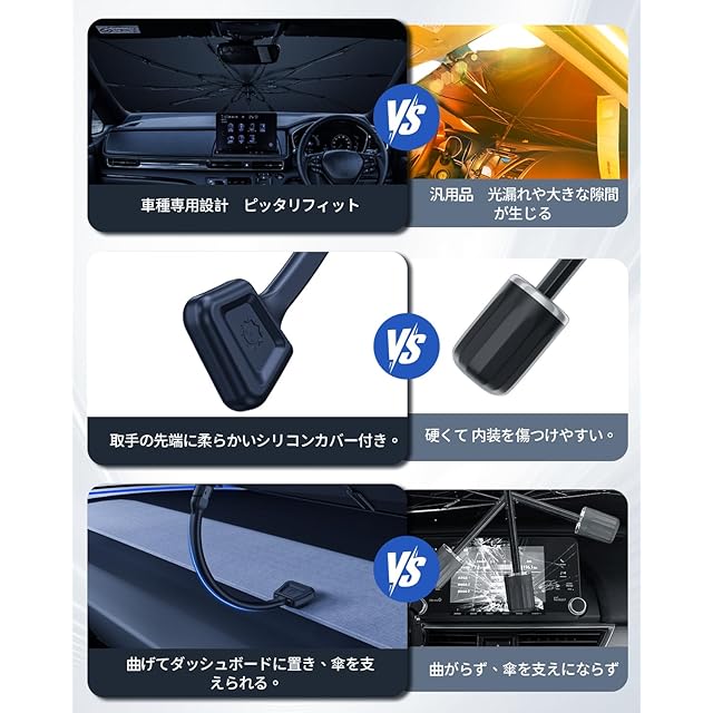【UV100%カット、UPF50+の壁──真夏の太陽に勝つ】「開けた瞬間、熱風が顔に当たる」「ダッシュボードが熱くて触れない」──そんな夏の“あるある”と今日でサヨナラ。チタンシルバー反射層と多層ナノ高分子断熱素材が、直射と紫外線をWブロック!さらに10本のガラス繊維強化骨がヴェゼル傘型サンシェード全体をしっかり支え、反復使用でも変形や破損の心配なし、耐久性を発揮。遮る、守る、そして涼しくする。全方位の対策、ここに完成!
