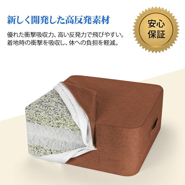 【人気アイテム:室内用トランポリン】日本開発チームに開発された最新型トランポリンです。高反発素材を採用し、おうち時間でも気軽にジャンプエクササイズが楽しめます。お部屋になじむインテリア性を備え、使わない時はクッションとしてもご利用いただけます。ストレス解消、エクササイズにぴったり、絶対に見逃したくない人気アイテム。