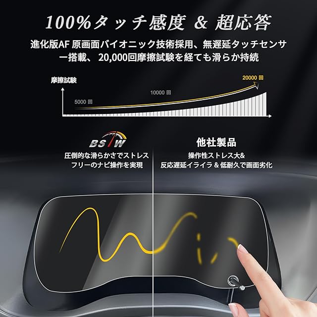 【0.3秒応答|原画面以上のタッチ感】アルファード40 Xグレード 9.8インチ ナビフィルムが約0.33mmの極薄構造でタッチ遅延ゼロを実現。地図拡縮・音楽切替・通話操作が水のごとくスムーズ、オリジナルスクリーンよりも滑らかな手触りをお届けします。