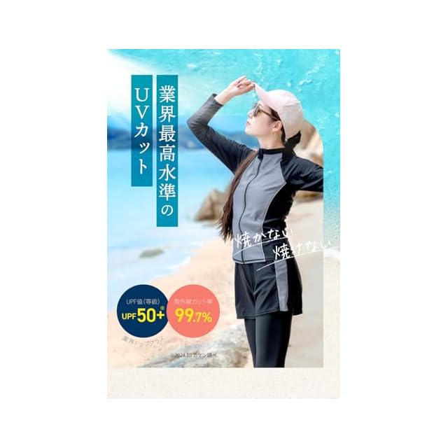 【 日焼け / UV対策 】 UVカット 率 99.7% の UPF50+ 取得。ソフトな肌触りで肌を 紫外線 から守り、様々なシーンで活躍! ママ水着 として 40代 50代 の方にもおすすめ