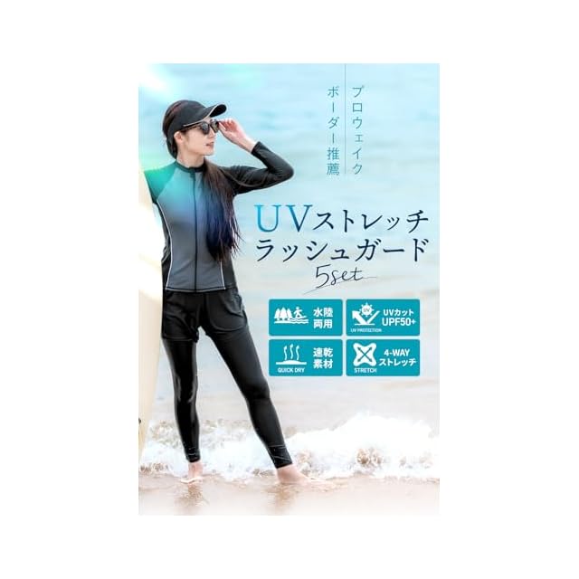 [AQXIA] ラッシュガード レディース 5点セット (プロウェイクボーダー推薦) 水着 体型カバー レギンス タンキニ グレー L