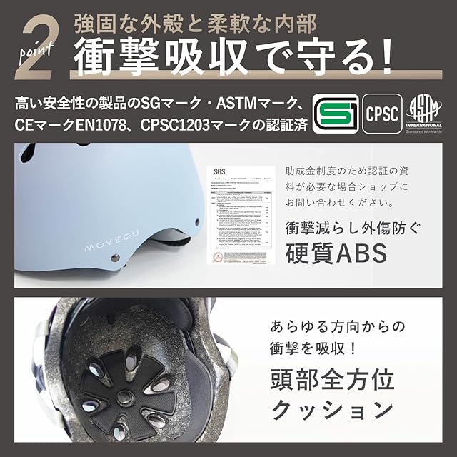 【日本向け子供用ヘルメット】当社のヘルメット は、日本国内の子供に特化した製品で日本人の子供の頭部形状に合わせて設計。 SGマーク・CPSC1203マーク・CEマークEN1078・ASTMの認証を取得。