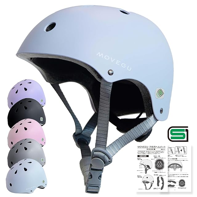 MOVEGU 子供用自転車ヘルメット 【 2種の クッション で サイズ調整 ! 】 こども 幼児 スポーツヘルメット CPSC安全規格 ASTM安全規格 軽量 通気性 サイクリング 通学 スケートボード キックスクーター 運動 アイススケート クッション 取り外し可能 洗濯可能 女の子 男の子 安全基準 (Baby blue, M(51-56.5cm)SG規格)