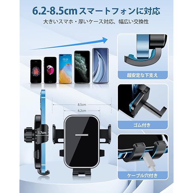 3.【360度回転&優れた使用感】:ホルダーは360度角度回転可能なため、縦置きはもちろん横置きにも対応します。ご愛車や個人により、一番良い角度に調整することができます。【幅広い機種対応】:本製品はコンパクトと機能性を兼ね揃えた車載ホルダーで、 4-6.7インチのスマホに適用しています。例えば:iPhone 14 /iPhone 13 / iPhone 12 / iPhone 11 / 11 Pro / XR / iPhone X / XS / XS MAX / iPhone 8 Plus / 8 / SE / SE 2 / 7 Plus / 7 / 6 Plus / 6、または Galaxy S8 / S8 Plus / huawei / Xiao Mi / Xperia / Google Pixelなどです。