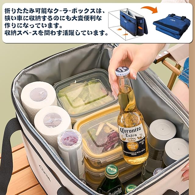 【折りたたみ収納可能】普通のクーラーボックスと違って、折りたたみ可能なクーラーボックスになっております。狭い車に収納するのにも大変便利な作りになっています。また災害時にもご利用いただけます。避難する際に食料など飲み物もすぐに入れられ活躍する場面も多いです