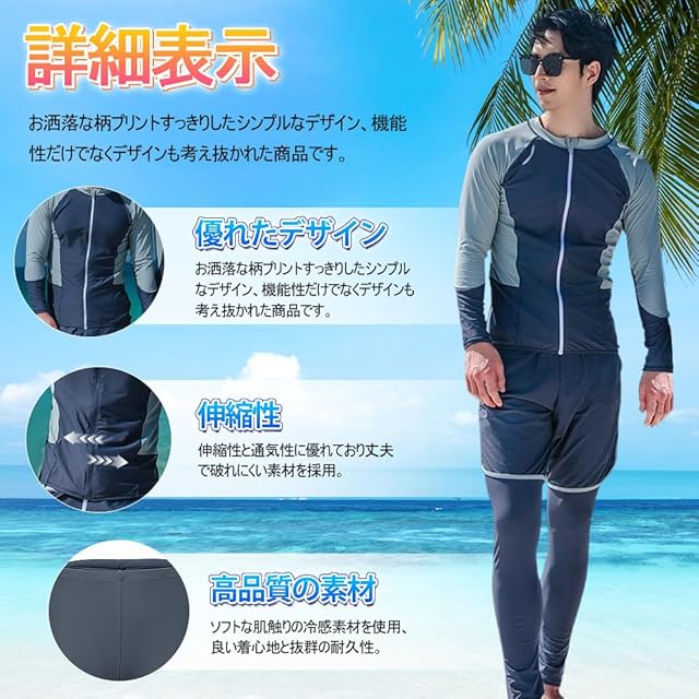 【高品質の素材】ソフトな肌触りの冷感素材を使用、良い着心地と抜群の耐久性。伸縮性に優れており、体形に合わせやすく、水中での動きも妨げないように体にフィットします。軽量なのでとても動きやすく、最適の機能性、吸汗速乾通気のドライ繊維、激しい運動の後もさらっとした着心地。前開き対応のラッシュガードは着脱も簡単です、着替えに便利。