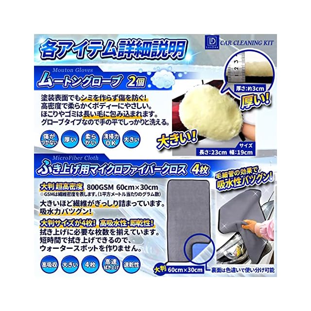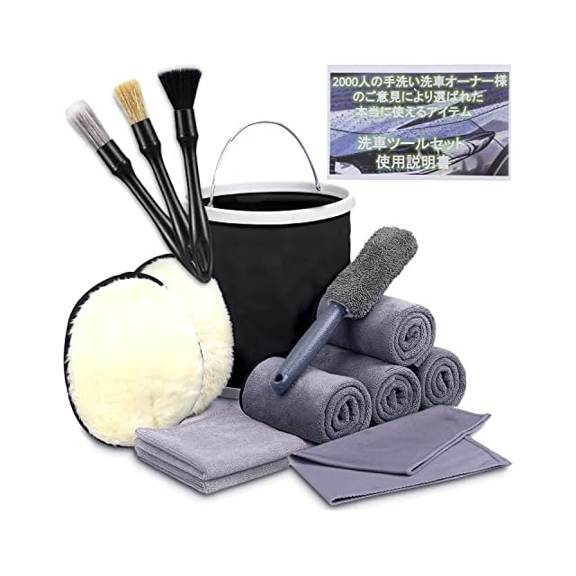 LuxDee 洗車用品 15点 洗車セット [ 拭き上げ用 マイクロファイバークロス 4枚 ディテールブラシ 3本 ムートングローブ 2個 ワックスクロス 2枚 窓ガラス用クロス 1枚 バケツ ホイールブラシ 1本 使用説明書 ] (④ 15点 ディテールブラシ, グレー)