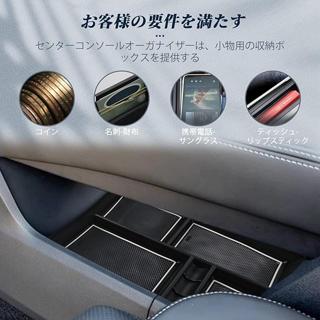 【スーパーストレージ機能】携帯電話、リップスティック、ティッシュ、名刺、サングラスを置くことができて、必要なものをすばやく簡単に見つけることができます。エクストレイル収納ボックスにコインをすっきりと収納できる専用コイン配置溝で、コインを使うときにとても便利です。コンソ一ルボックスのスぺ一スは増やして、持ち運びや収納が簡単で、箱も整然となります。