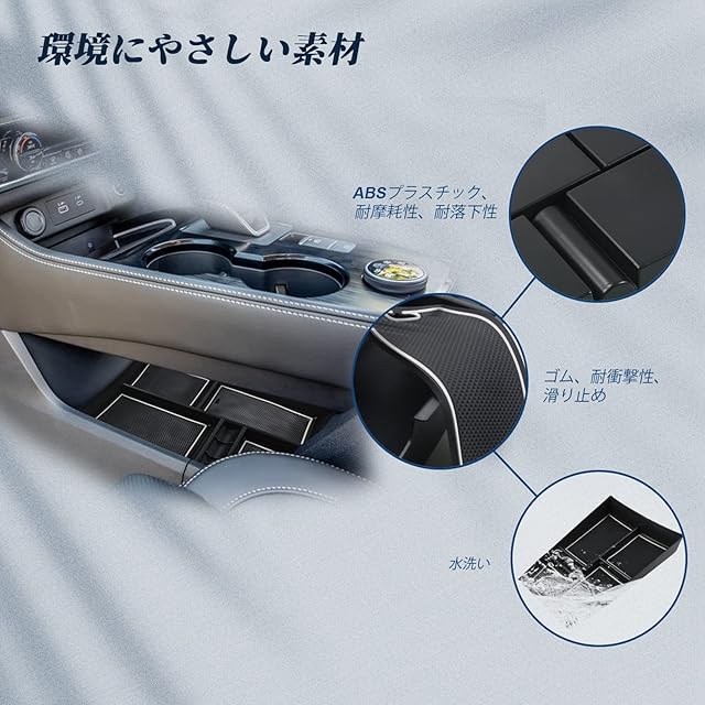 【防水性、滑り止め、無音】エクストレイルボックスの素材は水洗いが可能で、お手入れ後はまた新品のように見えます。ラバーマット(ゴム素材)が付いているので、運転中に小物が滑ったり音を立てたりする心配がありません。