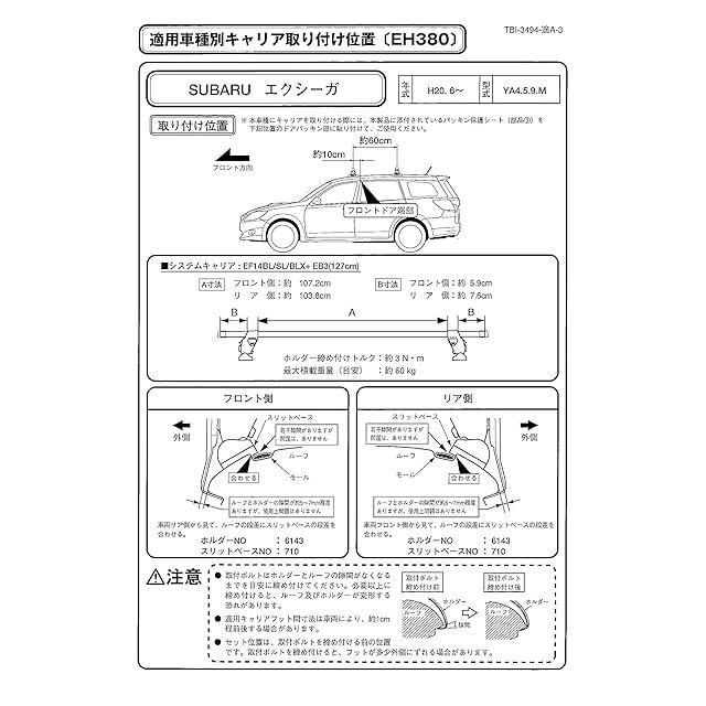 [注意] システムキャリアの車体取り付けには、別途ベースフット、ベースバー、場合によっては追加取付パーツが必要になりますので、ご購入の際には必ず車種適用表にて必要なパーツをご確認下さい。