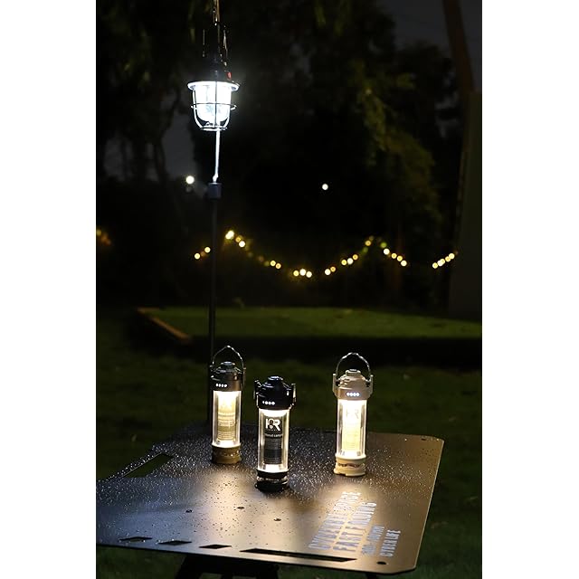 【5つ点灯モード・無段階調光】:5点灯モード:3200k白い光-キャンプライトモード、懐中電灯、暖かい光-ランタンモード+懐中電灯、暖かい光-キャンドルライトモード(ゆっくりと点滅)、1900k虫除けモード。スイッチを長押しすることで光の明るさを調節でき、周囲の環境に合わせて適切な光や雰囲気を作り出すことができます。アウトドアの達人のための本格的なツールライトです!