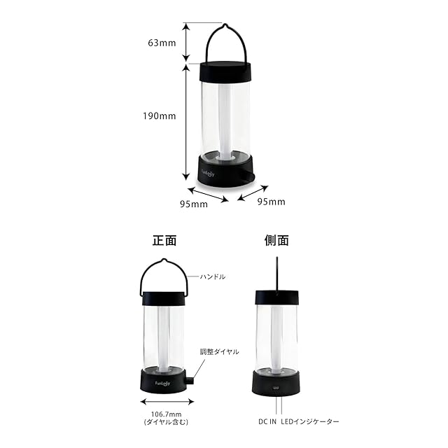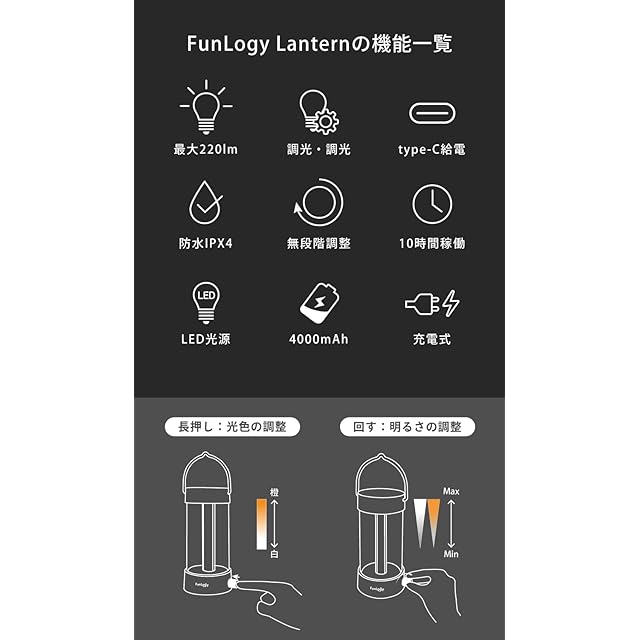 FUNLOGY Lantern(ランタン/LEDランタン)【Type-C 充電式/無段階調光/無段階調色/キャンプ/暖色/バッテリー 内臓/モバイルバッテリー対応/IPX4/日本ブランド/ホワイト】