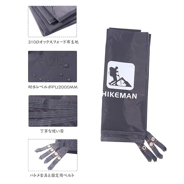 【製品仕様】テントシートは210D引き裂く防止のオックスフォードを採用し、高耐水加工が施されており、耐水圧は2000MMに達します。5サイズを選べます。