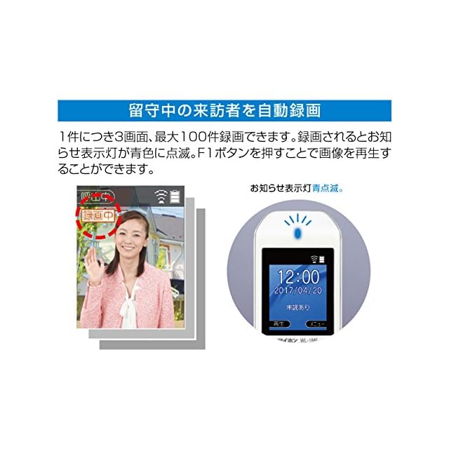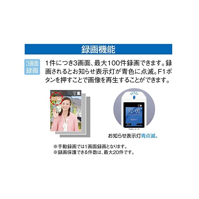 留守中の来訪者を自動で録画機能(静止画:100件 保護件数:最大20件)を内蔵しています。