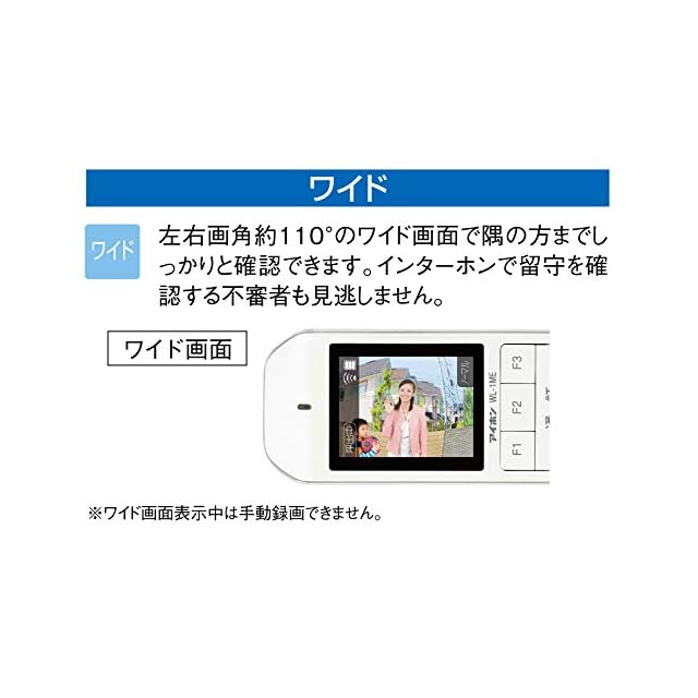 広角カメラで玄関先の映像をワイド画面(左右画角約110°)に切り替えることができます。