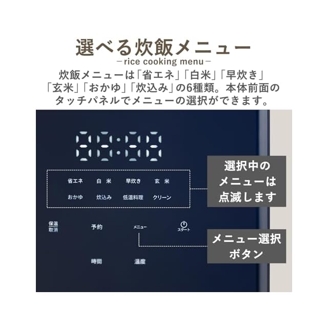 【少量高速モードで時短】炊飯容量0.5~1カップを目安に白米を約23分で炊き上げます。忙しい時や仕事終わりなどすぐに食事をとりたい時など、時短で炊飯が出来て便利です。
