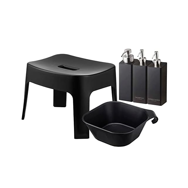 color:ブラック style:湯おけ+ディスペンサー2本&泡タイプ1本セット: