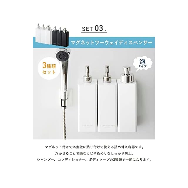 color:ホワイト style:湯おけ+ディスペンサー2本&泡タイプ1本セット: