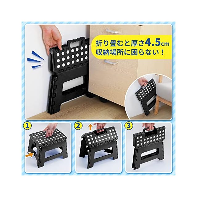 【たたむと4.5cm!超薄収納】チチロバ (TITIROBA) 踏み台 折りたたみ 耐荷重100kg 滑り止め 高さ22cm ステップ スツール脚立 洗車 釣り 室内 アウトドア 折りたたみチェア フォールディング ブラック 22AA001