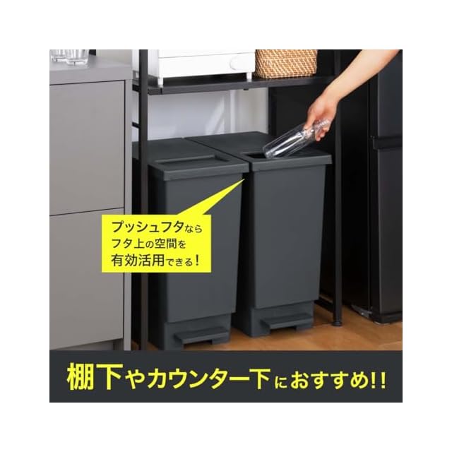 新輝合成 トンボ スウィッシュ ゴミ箱 45リットル 蓋を開けずにごみを捨てられる プッシュタイプ ペダル式 ホワイトグレー ふた付き 幅26.5×奥行45.5×高さ55.5cm 日本製