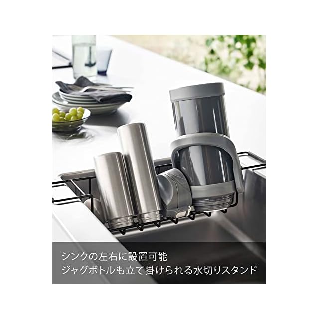 山崎実業(Yamazaki) シンク中 ワイドジャグ & マグボトルスタンド ブラック 約W52.5×D9.5×H11cm タワー tower ジャグボトルスタンド 水切りラック スリム 3739
