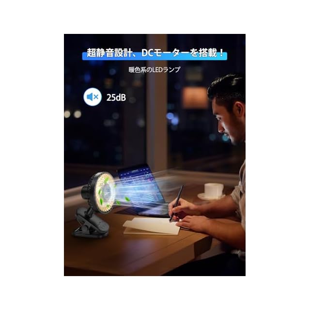 【超静音と省エネを搭載したdcモーター&スマート急速充電】25dBの極めて静かなdcモーターと吸音パッド搭載で、会社や図書館などの静かな場所でも気兼ねなくお使いいただけます。USBType-C充電式(充電中使用可)なので、パソコン/モバイルバッテリー/車載電源(5V)/充電器などから充電可能です。電池残量指示ランプ(30%、65%、100%)が備わっており、充電のタイミングが一目で分かります。