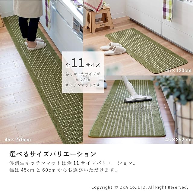オカ 優踏生 洗いやすい キッチンマット 45×120 グリーン