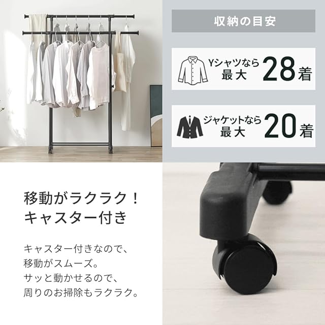 【上下左右に調節可能】アイリスオーヤマ 組立5分パイプハンガー 28着収納 キャスター付き バッグハンガー PI-E280S グレー