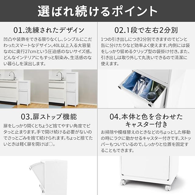 付属品:差込式キャスター(4個中2個はストッパー付き)・分別タグ(9種類10個)