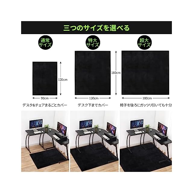 FUNHOO ゲーミングチェアマット 160×180cm チェアマット カーペットタイプ 滑り止め加工 フランネルタイプ 床保護 傷防止 フローリングマット 騒音対策 床暖房対応