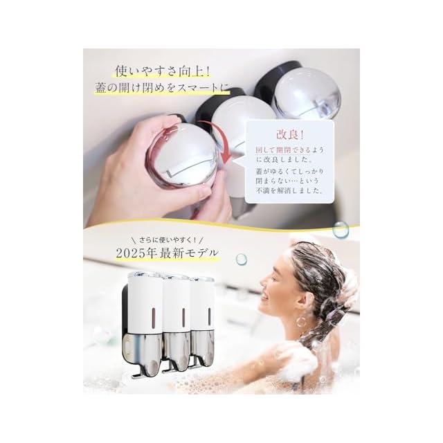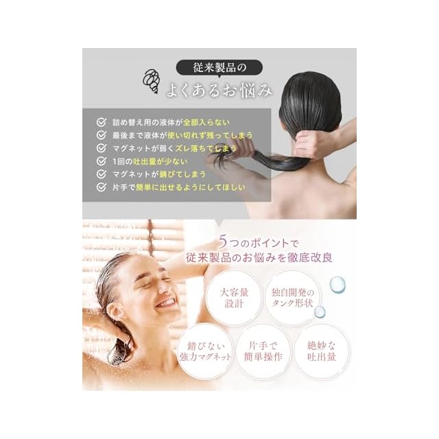【日本企業独自開発】当店独自の形状により、バスルームを"スッキリ彩る"シャンプーディスペンサー