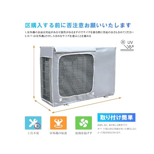 【耐久性と厚みのある素材】: 室外機 日除け 厳選された PVC コーティング生地で作られており、引き裂きに強く、高温にも耐えます。すべての季節に適しており、悪天候を恐れません。