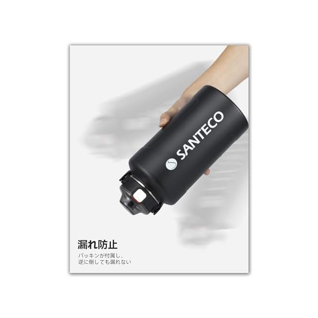 SANTECO 水筒 保温保冷 大容量 魔法瓶 1900ML ストロー付き 直飲み 水筒 ステンレス 真空断熱 ブラック
