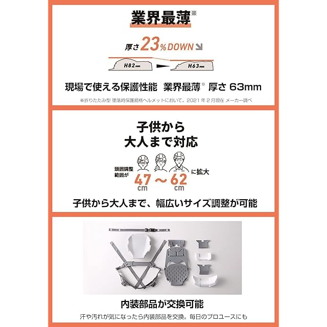DICプラスチック 折りたたみヘルメット IZANO2 ホワイト/オレンジライン