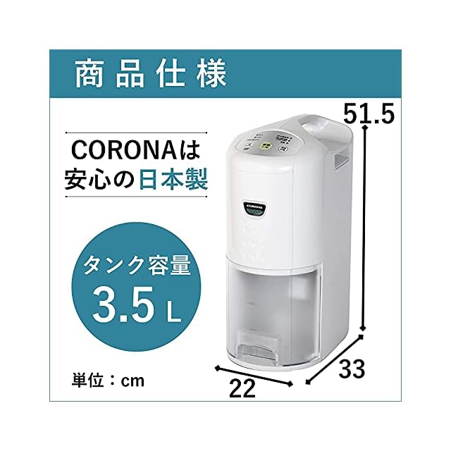 CORONA(コロナ) 衣類乾燥除湿機 【日本生産】 除湿量6.3L(木造7畳・鉄筋14畳まで) コンプレッサー式 10年交換不要フィルター搭載 ホワイト CD-P63A2(W)