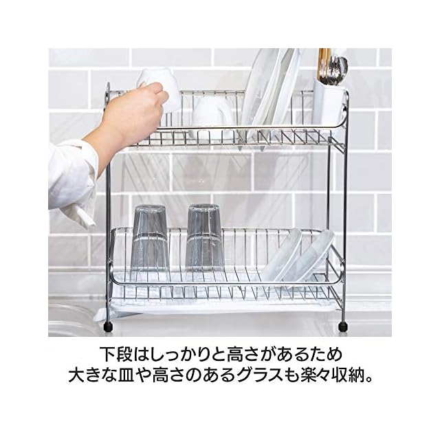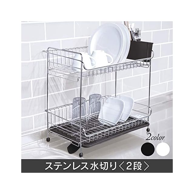 アイリスプラザ 水切りラック 突っ張り一人暮らし 水切り かご シンク上 バスケット ステンレス製 2段 ワイドサイズ ホワイト 省スペース 突っ張り水切りラック SSDD-2M