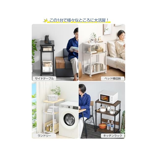 机と合わせて自由で配置可能:置くだけで手軽にあなたのデスクを自由化!お使いのデスクの横に設置することでL字テスクにもなります。天板を低めにして、PCを入れて、デスク下にぴったり収まるpcワゴンです。