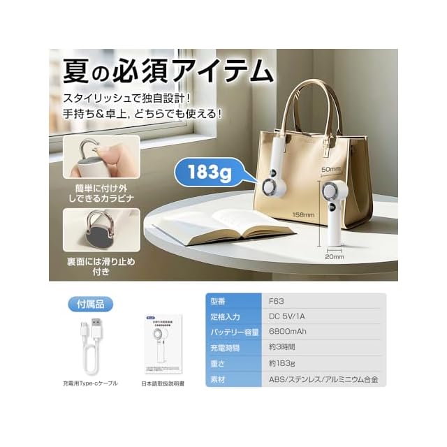 "【6800mAh大容量バッテリー・Type-C急速充電】本冷却プレート付き ハンディファン は、6800mAhの大容量バッテリーを搭載した、 せんふうき扇風機 小型 手持ちタイプで、一度のフル充電で最長29時間の連続運転が可能な 手持ち扇風機 です。軽量かつコンパクトな ハンド扇風機 として、バッグにもすっきり収まりやすい 携帯扇風機 。Type-C対応の急速充電式なので、外出先でも手軽にチャージ可能な冷たい風が出る ハンディ扇風機 です。 ハンディー扇風機 としての機能性と使いやすさを追求しました。キャンプやスポーツ観戦でも、コンパクトな ハンディー扇風機 が大活躍。 ハンディファン 冷却プレート 搭載モデルであれば、冷却効果がさらにアップ。 はんでいーふぁん としての性能を実感していただけます。夏の必需品である せんふうき扇風機 小型 手持ちは、見た目もスタイリッシュ。複数台の持ち歩きやご家族での使用にもおすすめする 静音手持ち扇風機 。"