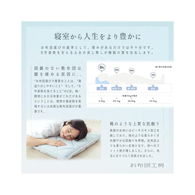熟練の布団職人たちによる安心の純日本製、マットレス不要なほど極厚ボリュームの敷き布団
