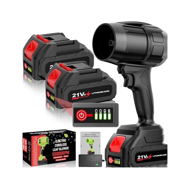ブロワー 強力 洗車【新昇級版モデル 】PSE認定 残量表示 バッテリー 2個搭載 55000RPM マキタ電池互換 高速回転 無段階変速 軽量 コードレス ブロワー 80m/s大風速 最強 強力 耐久性 12枚大ファンブレードターボブロワー 高温耐性 小型 庭掃除/落ち葉/洗車/キーボード/パソコン/エアコン/網戸/除雪/フィギュア/バーベキュー 日本語説明書付き