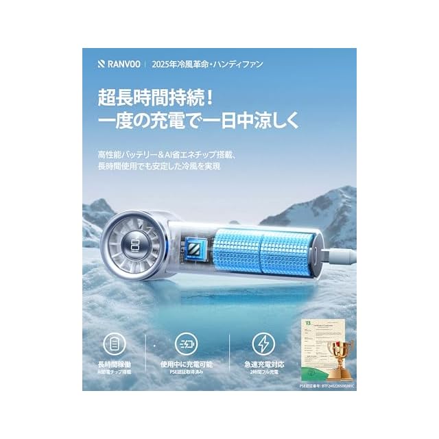 【安全性とスタイルを兼ね備えた完璧なギフト】日本デザイン賞を受賞したRANVOOの小型扇風機は、洗練されたデザインと高精細なディスプレイを備え、風速やバッテリー残量をリアルタイムで確認できます。安全基準を満たすABS難燃性素材を使用し、スリムでモダンな外観に仕上げました。さらに、1年間の安心が付いており、万が一の不具合にも対応。コンパクトながらパワフルなこのハンディファンは、子供から大人、女性まで喜ばれるおしゃれで実用的なアイテムで、プレゼントにも最適です。