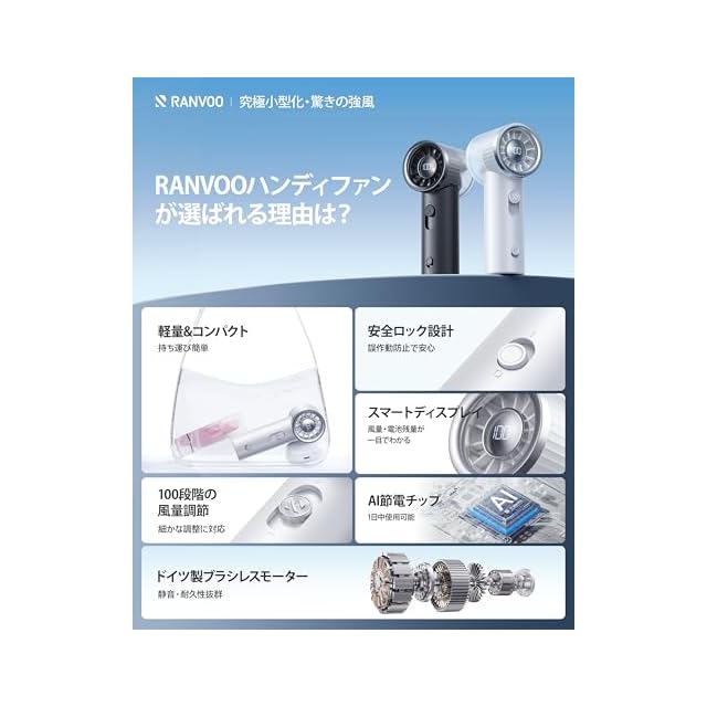 RANVOO ハンディファン【究極小型化・驚きの強風】扇風機 ハンディ 1-100段階風量調節 20,000RPM LEDディスプレイ ミニ扇風機 コンパクト 強力 万博 暑さ対策 熱中症対策 子供 通勤 屋外 旅行 プレゼント スノーホワイト