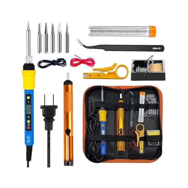 【セット内容】はんだごて*1、こて先*5、ごて台*1、スポンジ*1、はんだワイヤー*1、はんだすいとり器*1、収納バッグ、ピンセット*1、赤ワイヤー*1、黒ワイヤー*1ワイヤーストリッパー*1